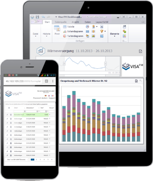 Die Nutzung von Smartphone und Tablet in der modernen Arbeitswelt ist nicht nur beliebt, sie vereinfacht und beschleunigt gerade im Facility Management viele Geschäftsprozesse. Durch den intelligenten Einsatz digitaler Technologien ermöglicht Ihnen VISAFM Raumbuch beispielsweise, sowohl Ihre Mitarbeiter als auch Ihre Geschäftspartner in Ihre FM-Prozesse einzubinden. Das Einsatzspektrum reicht von der Bereitstellung von Daten zu Auskunftszwecken bis hin zur Auftragsbearbeitung.